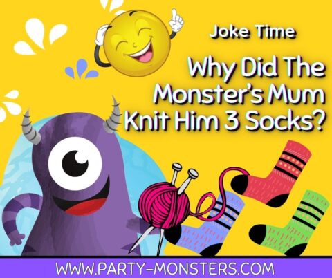 Posted on May 3, 2021By party-monstersIn Party Monsters Party Monsters Entertainer Presents Joke Time ย ย Why Did The Monster’s Mum Knit Him 3 Socks? ย THE ANSWER IS ……. ย brain challenges challenge time entertainment for kids jokes for kids online parties for kids party monsters entertainer party monsters tvFacebookTwitterLinkedIn